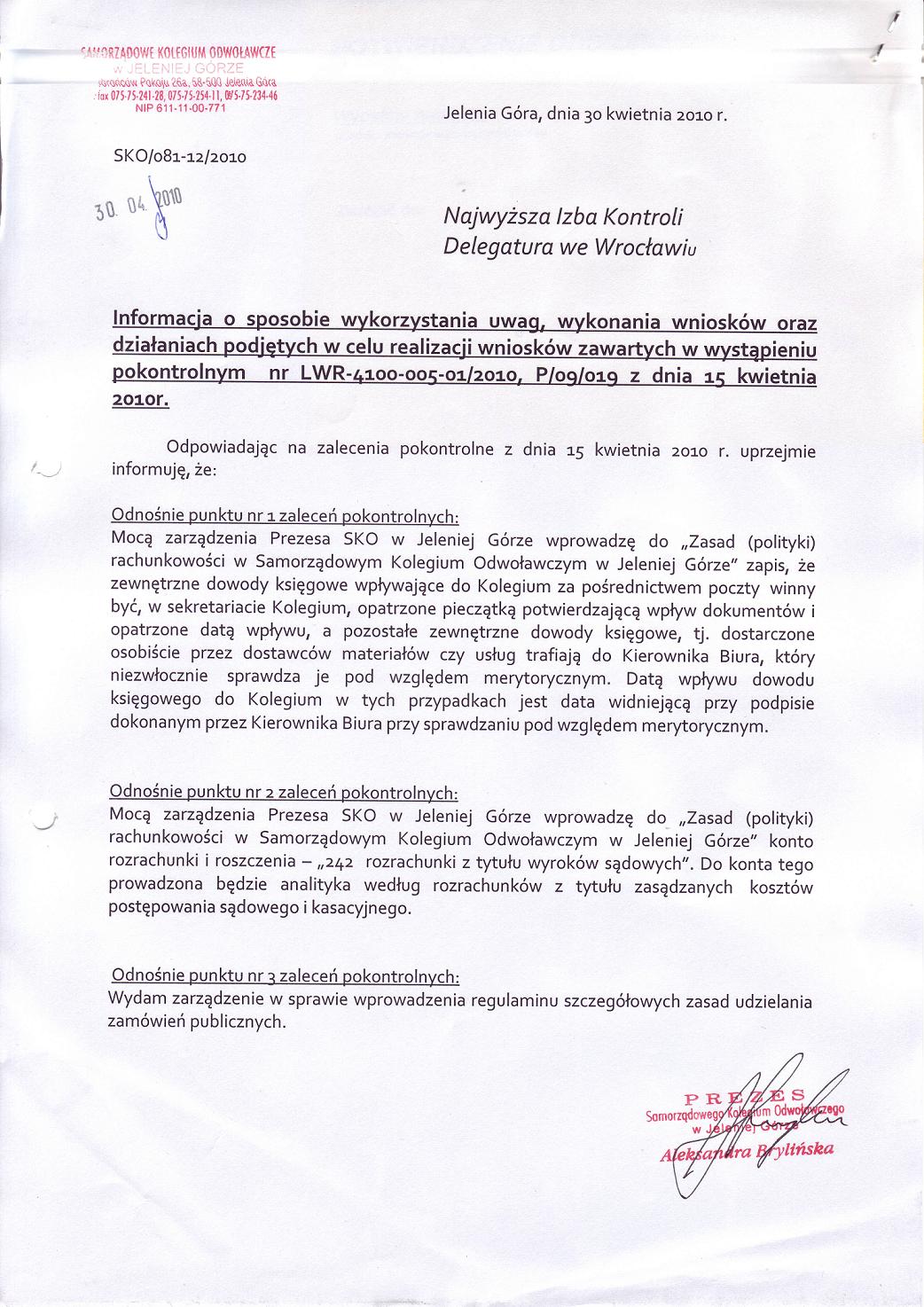 Informacja o zbędnych i zużytych składnikach rzeczowych majątku SKO Jelenia Góra
